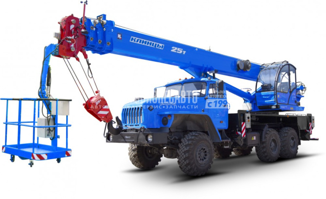 Модель шасси - УРАЛ 5557; Колес.фор. - 6Х6; Тип двиг. - дизельный; Раб.высота подъема - 28 м; Макс.вылет люльки - 19 м; Груз-ть люльки - 250 кг; Угол повор.стрелы - 360 град.;