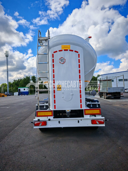 - Назначение транспортировки: Цемент, мука, комбикорм - Объём 45 м3 - Общая длина    11 890 мм - Ширина транспортного средства 2 530 мм - Высота транспортного средства 4 000 мм - Расстояние между осями 1360 мм - Высота ССУ 1220 мм - Собственная масса (±%3) 5 950  кг - Расчетное давление  0,2 Мпа - Рабочая температура  65 oC - Количество отсеков: 3 (Три) раздельных отсека - Форма цистерны: Цилиндрическая с тремя конусами - Материал цистерны: Алюминий 5182(H111), толщина 5,0 мм - Оси: 3 SAF, 10 тонн, тип CBX, дисковый тормоз - Тормозная система: WABCO 4S/2M EBS - Подвеска: Пневматическая подвеска, первая ось с функцией подъема, регулировочный кран для подъема и опускания платформы с функцией AUTO-RESET Рукав: Ду 100, 4 -дюймовый сливной шланг длиной 4,2 метра с быстроразъемным соединением 4 дюйма. - Цвет: Белый