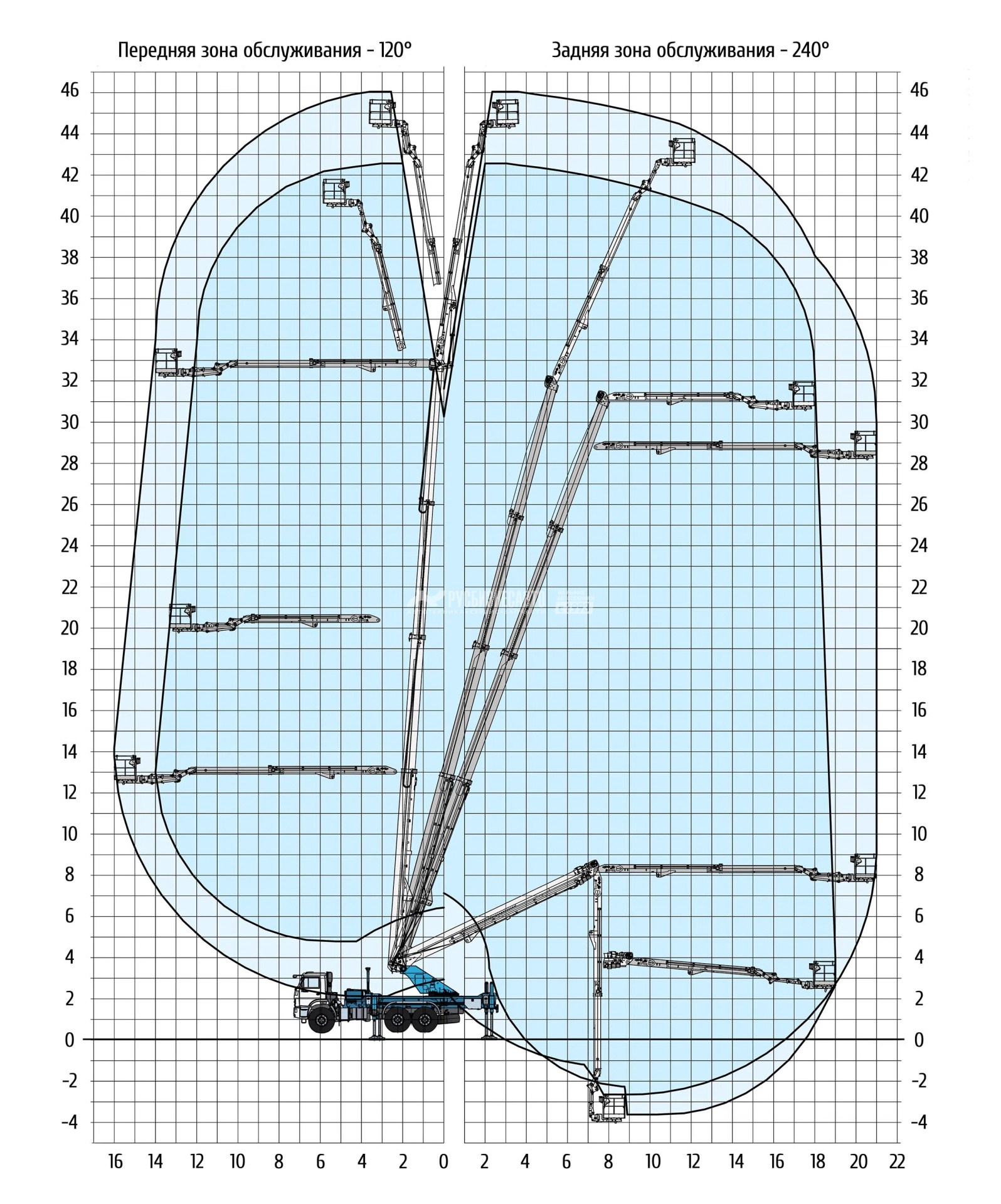 Технические характеристики АГП КЛИНЦЫ АГП-45-5К (45м.) на шасси КАМАЗ-43118-50, однорядка, стрела вперед