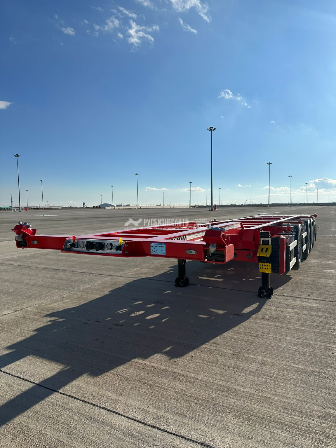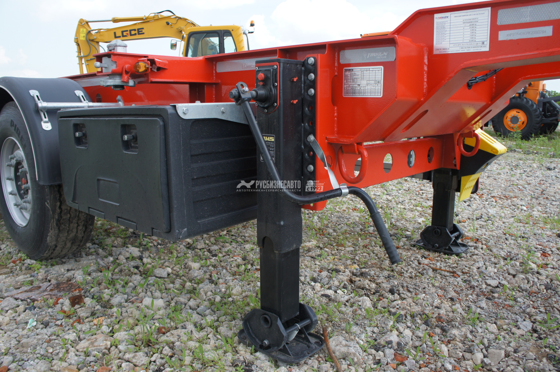 | Дополнительное оборудование | - Полуприцеп контейнеровоз TIRKON TRK4A - 4 оси, Предназначен для перевозки стандартных контейнеров следующих типов: 1х40 футов, 2х20 футов,1 x 40 футов, Под тягач высотой ССУ 1150 мм, - 4 оси SAF, Дисковые тормоза ,1-ая и 4-ая ось подъемные с автоматическим подъемом, 8 колес (без запаски), Задняя погрузочная площадка, Собственная масса 5200 кг, 6 балок с замками Twist Lock для надёжной фиксации контейнеров, JOST, Алюминиевый настил в задней части рамы для удобства погрузки/разгрузки при перевозке 20ft контейнера, Герметичный инструментальный ящик, Корзина для двух запасок, Рама обработана эпоксидным грунтом на цинковой основе в два слоя. Окраска 2-х компонентной краской, Высокопрочная рама из стали марки S700MС |