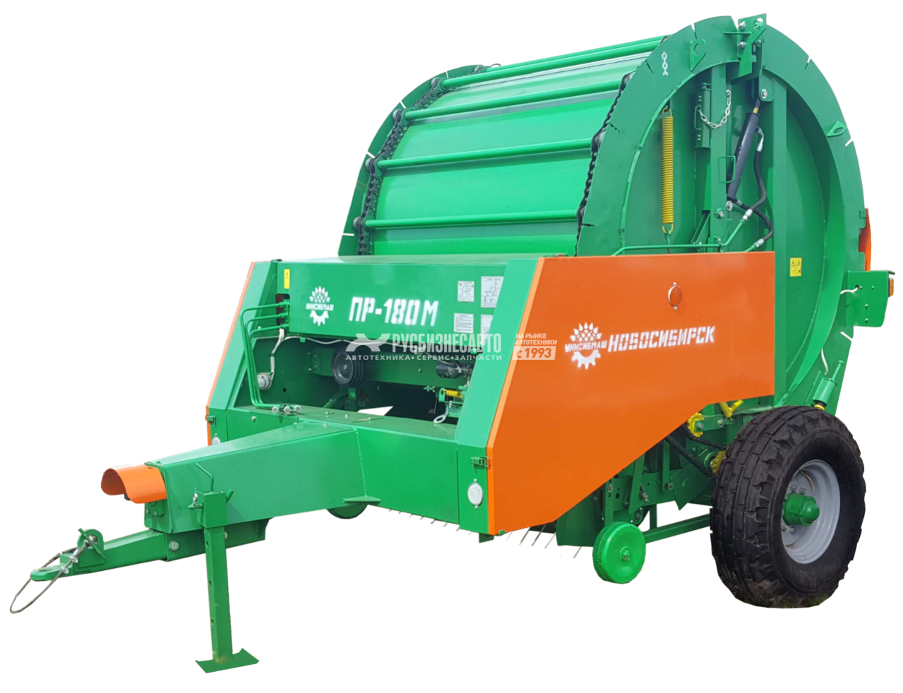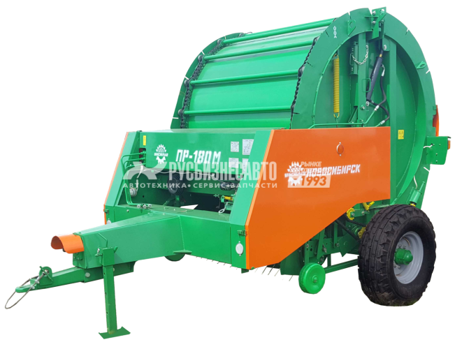Пресс-подборщик рулонный ПР-180М производства «УНИСИБМАШ», предназначен для подбора валков естественных и сеяных трав сена и соломы, прессования их в рулоны в среднем 500 кг с последующей обмоткой шпагатом.